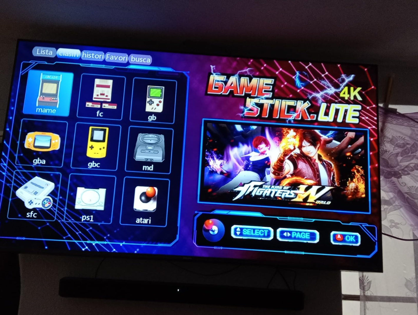 Solo tienes que conectar la consola a cualquier puerto HDMI, encender tu TV o proyector, y listo: el menú aparece lleno de clásicos esperando por ti.